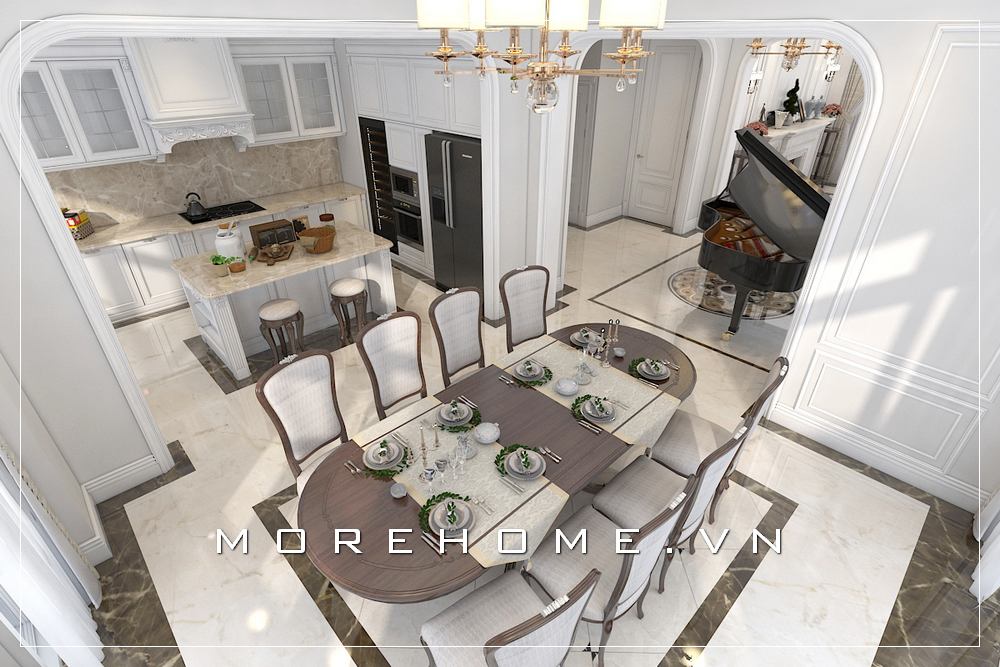 Thiết kế nội thất phòng ăn biệt thự tân cổ điển sang trọng và đẳng cấp