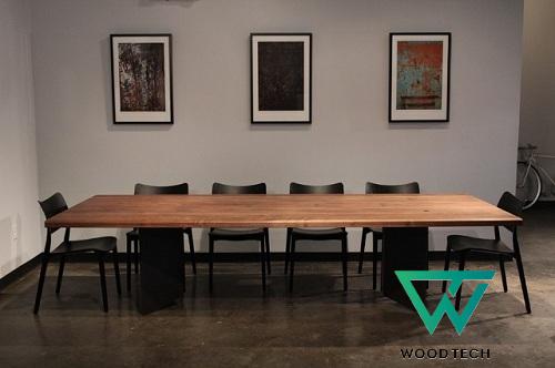 Bàn ghế ăn gỗ óc chó với hình khối đặc biệt